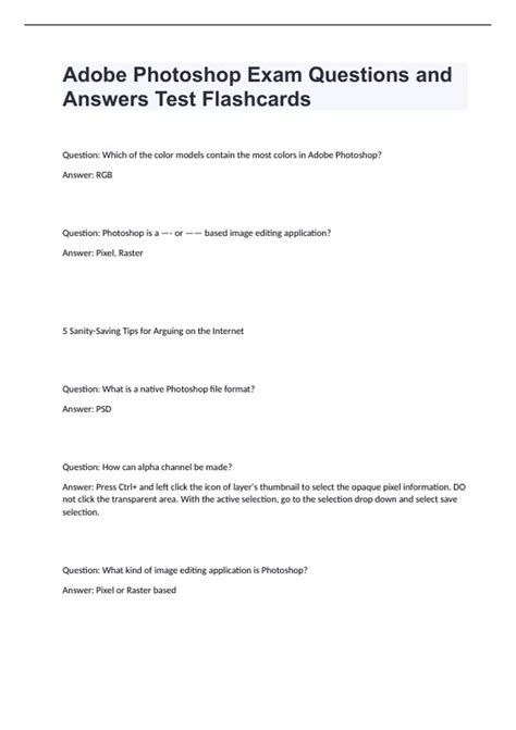 Read Online Photoshop Questions And Answers Exam Reader online is a convenient and frugal way to read Photoshop Questions And Answers Exam you love right from the comfort of your own home. Yes, there sites where you can get Reader "for free" but the ones listed below are clean from viruses and completely legal to use.
