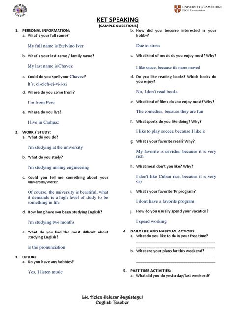 Read Online Ket Speaking Sample Questions Answers Free Epub